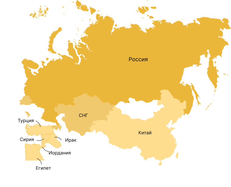 Продукция поставляется в страны Ближнего Востока: Египет, Иордания, Ирак, Сирия, Турция, а также в страны СНГ и Китай.